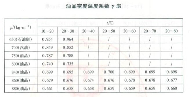 油品密度温度系数表